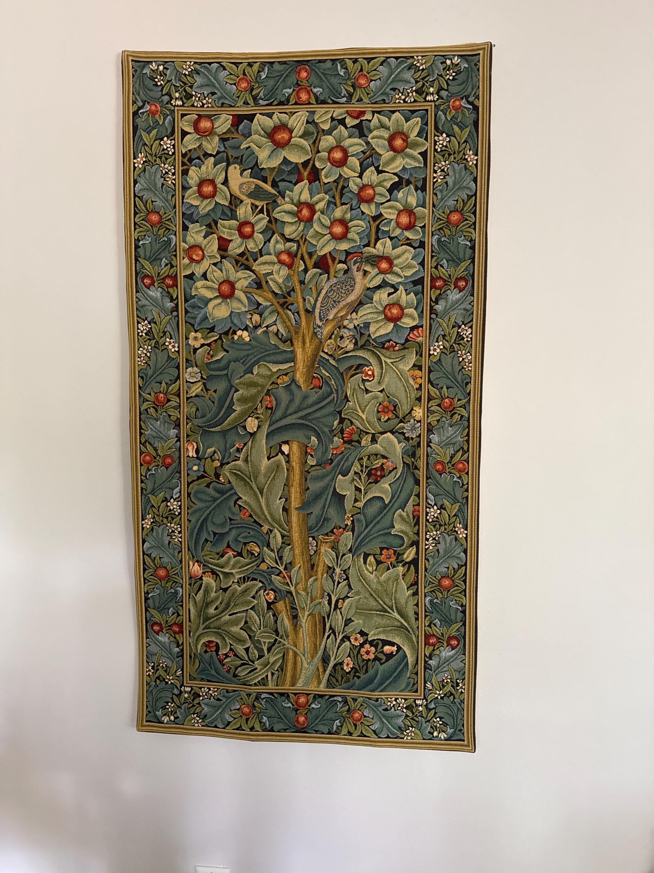 Reproduction of Woodpecker by William Morris & Co. as a Tapestry Wall Hanging.