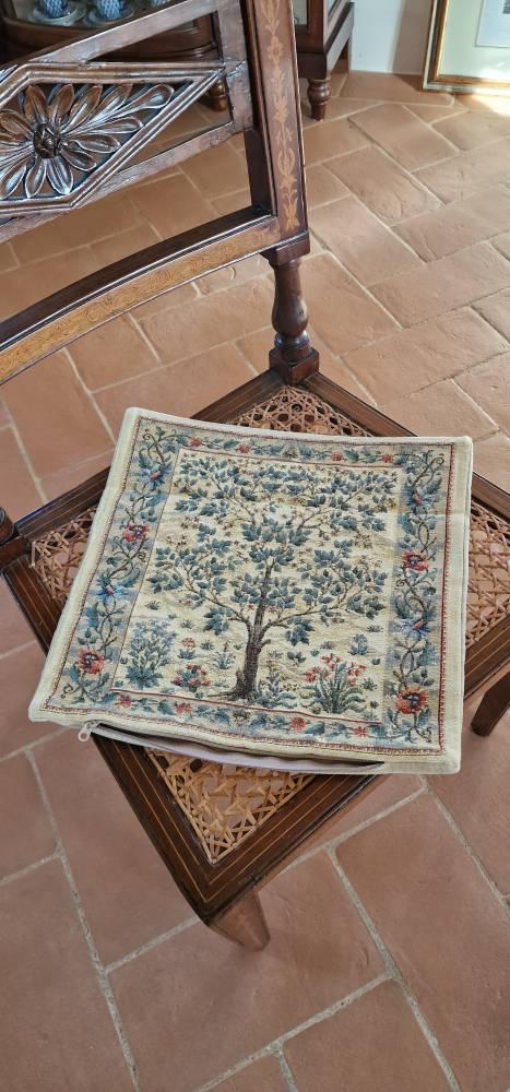 Reproduction of Tree of Life Tapestry by William Morris & Co. as a cushion cover.