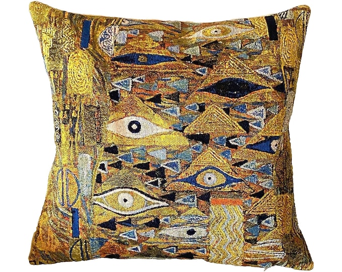 Gustav KLIMT Patchwork BELGIAN Belgium Jacquard WOVEN Hand Finished Tapestry Pillow Cushion Cover with Gold Lurex, 46cm x 46cm, 18" x 18"